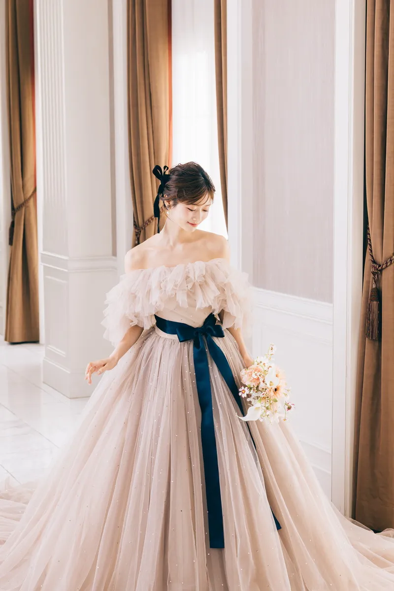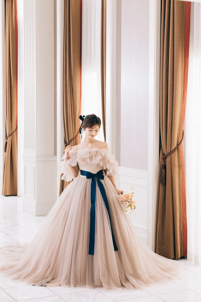 | 付属の アレンジ小物 | ショルダーフリル 2112 BR / 胸元フリル 2112 BR / サッシュベルト 2112 BR |